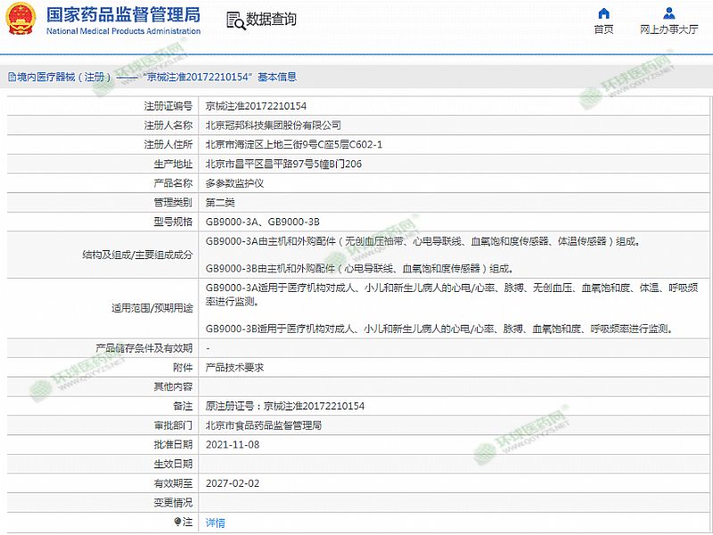 | 產(chǎn)品用途 | GB9000-3A適用于醫(yī)療機(jī)構(gòu)對(duì)成人、小兒和新生兒病人的心電/心率、脈搏、無創(chuàng)血壓、血氧飽和度、體溫、呼吸頻率進(jìn)行監(jiān)測。GB9000-3B適用于醫(yī)療機(jī)構(gòu)對(duì)成人、小兒和新生兒病人的心電/心率、脈搏、血氧飽和度、呼吸頻率進(jìn)行監(jiān)測。 有效期至 2027-02-02 |