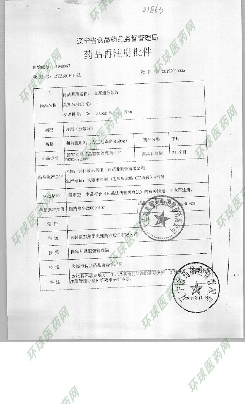 | 通用名稱 | 血塞通分散片 |