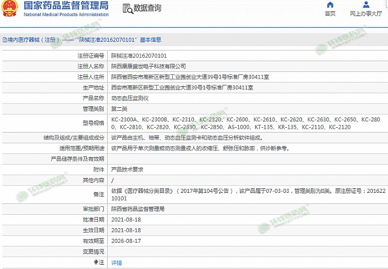 批準文號: 陜械注準20162070101 【驗證真?zhèn)?/a>】