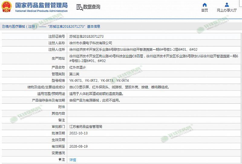 批準(zhǔn)文號: 蘇械注準(zhǔn)20182071273 【驗證真?zhèn)?/a>】
