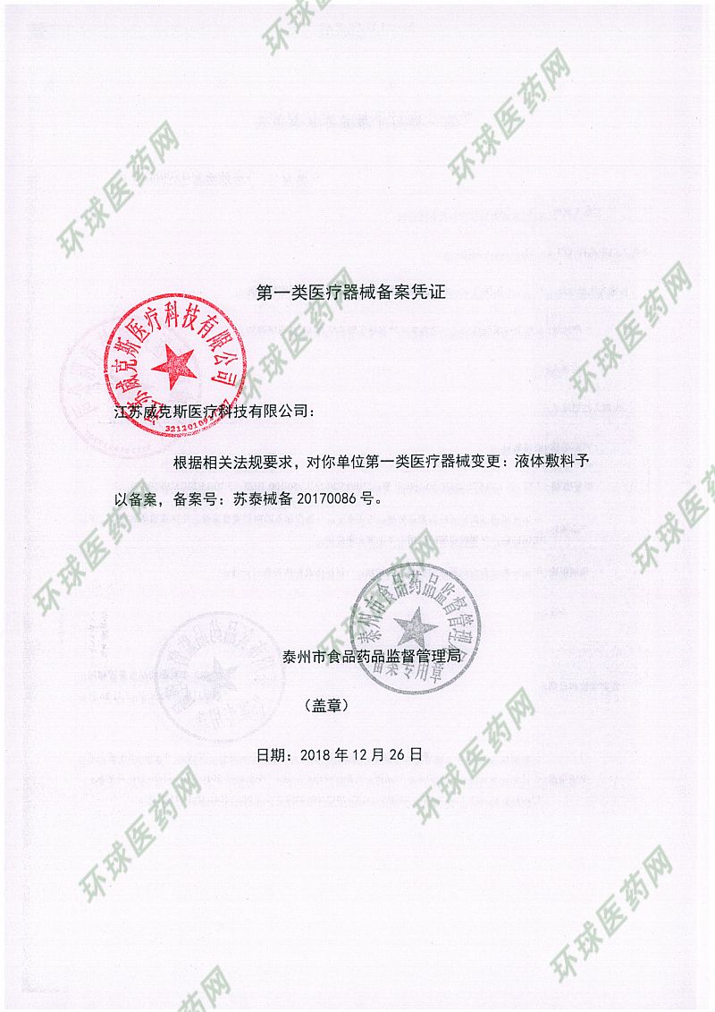 批準(zhǔn)文號: 蘇泰械備20170086號 【驗證真?zhèn)?/a>】