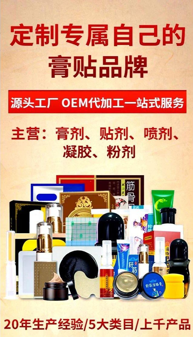 | 補(bǔ)充說(shuō)明 | 注意事項(xiàng):1市場(chǎng)大:膏藥的空白市場(chǎng)很大, 消費(fèi)群體廣大。每個(gè)人都可能用到膏藥,并且有嚴(yán)格的區(qū)域保護(hù)。 2經(jīng)營(yíng)活:可以自己在電商、微信上賣(mài),可以做直播、短視頻,也可以和各大醫(yī)院、藥店、美容店合作。 3品種多:膏藥有:骨科、兒科、婦科、癥狀類(lèi)等;瘖y品有面膜、精華液、水乳霜、彩妝、套盒、洗沐護(hù)等。 4操作易:專(zhuān)業(yè)的客服團(tuán)隊(duì)每月定期回訪,根據(jù)不同市場(chǎng)提供指導(dǎo)、培訓(xùn)、廣告、促銷(xiāo)活動(dòng)支持! 貯藏:干燥陰涼 禁忌:無(wú) 保質(zhì)期:兩年 備注:1、優(yōu)質(zhì)服務(wù):專(zhuān)業(yè)OEM服務(wù)團(tuán)隊(duì)一對(duì)一服務(wù),從設(shè)計(jì)到出貨全程專(zhuān)人跟進(jìn)。 2、出貨迅速:包裝定稿,專(zhuān)業(yè)生產(chǎn)團(tuán)隊(duì)可在10—15天內(nèi)交付發(fā)貨。 3、質(zhì)量**:從生產(chǎn)至出廠五道質(zhì)檢嚴(yán)格把關(guān),全自動(dòng)四邊封口機(jī)器密封性更好,產(chǎn)品更美觀 4、權(quán)威認(rèn)證:國(guó)家FDA認(rèn)證的一類(lèi)醫(yī)療器械文號(hào),藥監(jiān)局可查,十萬(wàn)級(jí)凈化標(biāo)準(zhǔn)生產(chǎn)車(chē)間,品質(zhì)有**。 5、經(jīng)驗(yàn)豐富:20年生產(chǎn)加工經(jīng)驗(yàn),已為上百個(gè)品牌提供服務(wù),產(chǎn)品已出口多個(gè)國(guó)家和地區(qū)。 6、產(chǎn)量充足:現(xiàn)代化生產(chǎn)車(chē)間、進(jìn)口全自動(dòng)生產(chǎn)線,日產(chǎn)量100萬(wàn)片。 7、品類(lèi)齊全:300多款成熟配方(妝字號(hào)、械字號(hào)、消字號(hào))免費(fèi)打樣 |