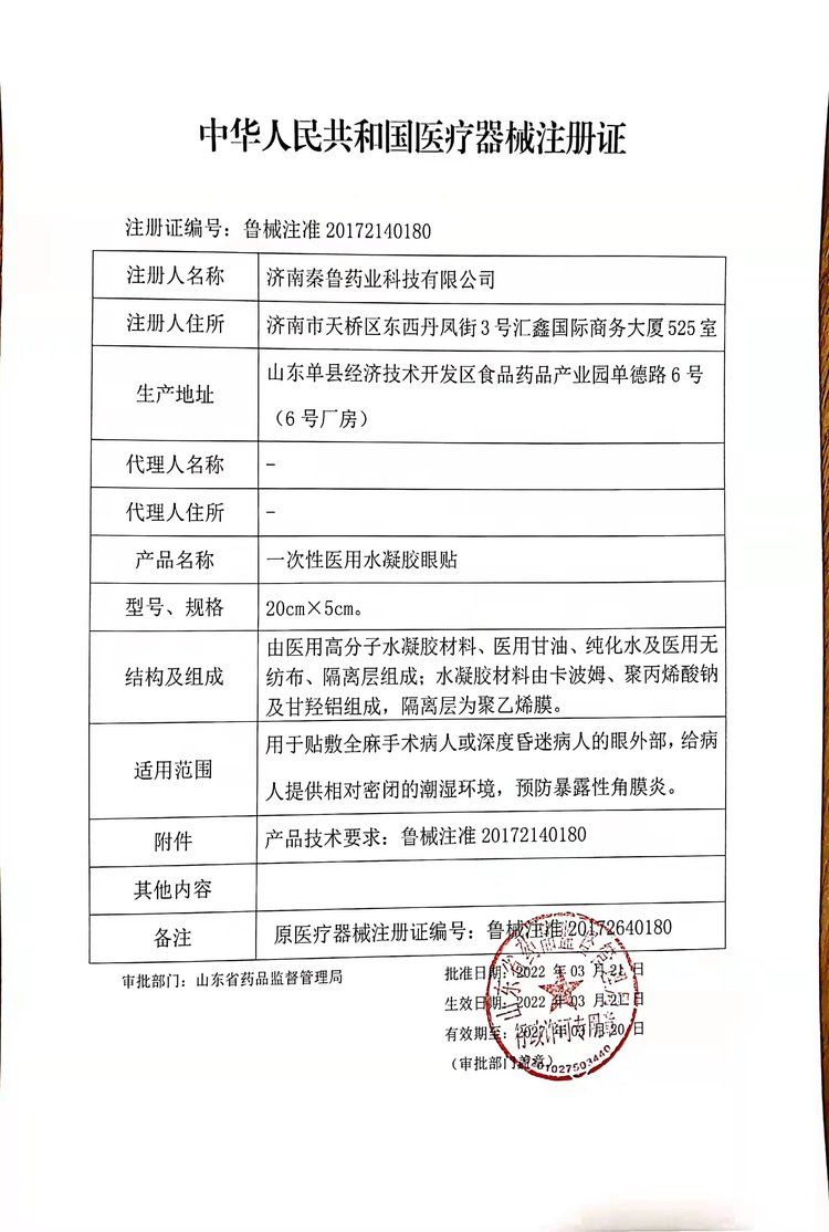 產品名稱: 一次性醫(yī)用水凝膠眼貼