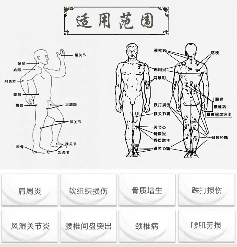 | 產(chǎn)品用途 | SJT-A型用于頸椎病的輔助治療;SJT-B型用于肩周炎的輔助治療;SJT-C型用于骨質(zhì)增生的輔助治療;SJT-D型用于腰椎間盤突出的輔助治療;SJT-E型用于跌打損傷的輔助治療;SJT-F型用于風(fēng)濕關(guān)節(jié)炎的輔助治療;SJT-I型用于頸椎病、肩周炎、骨質(zhì)增生、腰椎間盤突出、跌打損傷、風(fēng)濕關(guān)節(jié)炎的輔助治療。 |