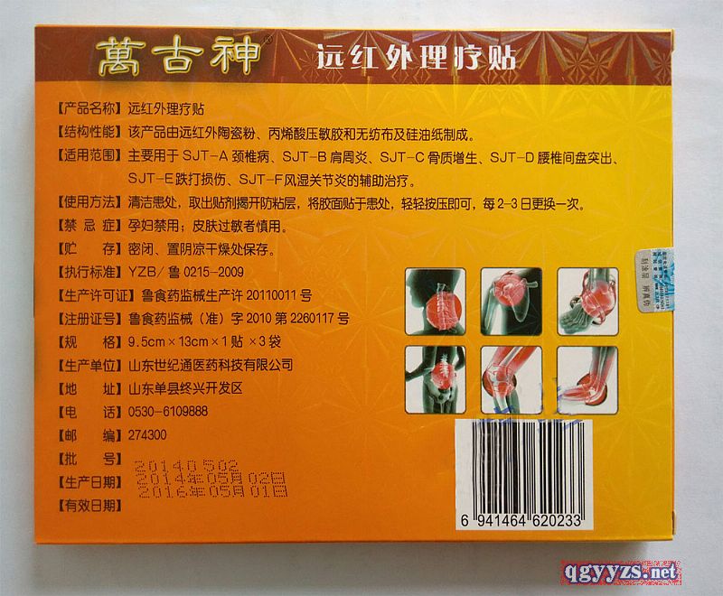 | 產(chǎn)品用途 | 遠(yuǎn)紅外理療貼是采用熱壓法涂布工藝和透皮吸收技術(shù)制成的二類(lèi)醫(yī)療器械準(zhǔn)字號(hào)產(chǎn)品。該產(chǎn)品克服了普通外用貼膏透氣性差、透皮吸收困難,適應(yīng)癥少的缺陷,使其具有持續(xù)釋放藥效,擴(kuò)張血管,改善血液微循環(huán),增強(qiáng)機(jī)體細(xì)胞活力,達(dá)到緩解痙攣,舒筋活血,消腫止痛、鎮(zhèn)痛的作用。使用時(shí),隨取隨用,輕巧方便,符合貼膏類(lèi)產(chǎn)品臨床應(yīng)用時(shí),療效好,見(jiàn)效迅速,適應(yīng)癥廣。 |