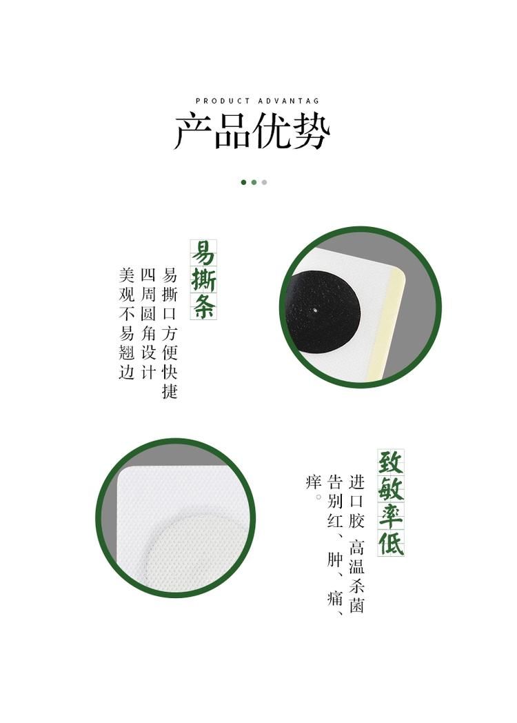 | 產(chǎn)品規(guī)格 | 7cm×7cm×3貼×40袋/盒(可根據(jù)客戶需求進(jìn)行加工定制) |