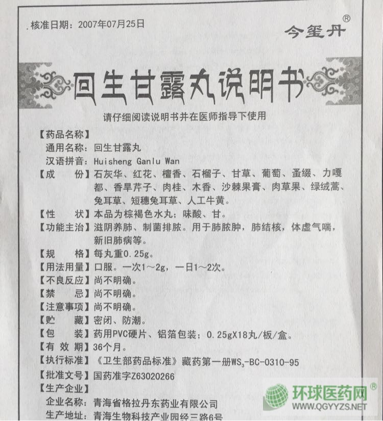 通用名稱: 回生甘露丸