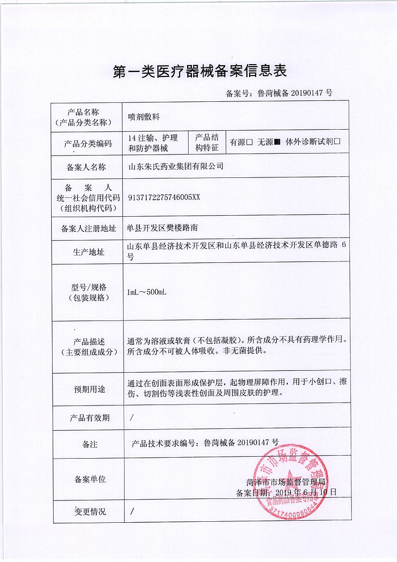 批準(zhǔn)文號(hào): 魯菏械備20190069號(hào) 【驗(yàn)證真?zhèn)?/a>】