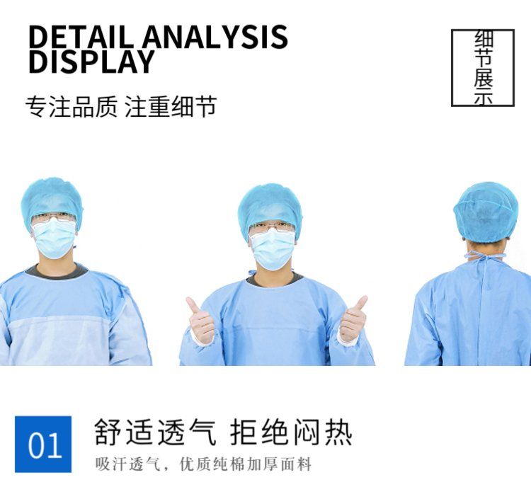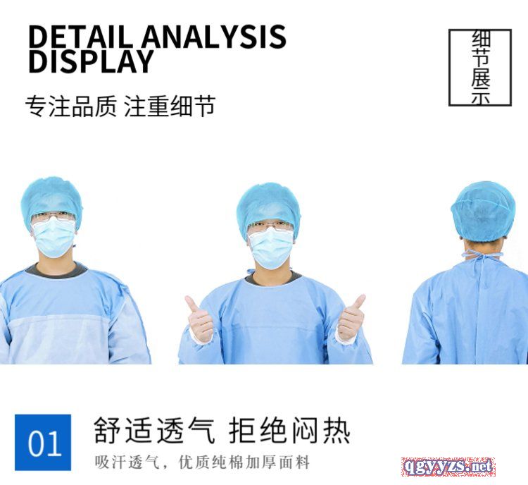 | 補充說明 | 1.手術(shù)衣經(jīng)過環(huán)氧乙烷滅菌,打開即可使用。 2.手術(shù)衣采取扇形折疊方式,方便展開和穿戴。 3.手術(shù)衣關(guān)鍵區(qū)域采取超聲波車縫,有效阻隔液體滲漏。 4.手術(shù)衣一次性使用,成本低,有效提高醫(yī)護人員工作效率。 5.術(shù)后的手術(shù)衣,可以直接作焚燒處理,減少環(huán)境污染。 采用高阻隔性和透氣性能良好的經(jīng)三抗處理的SMMMS無紡布作為基材,穿著十分舒適,抗?jié)B透性強,對干濕態(tài)下的細菌有良好的屏蔽效果,有效地避免了患者和醫(yī)護人員間的交叉感染。 |