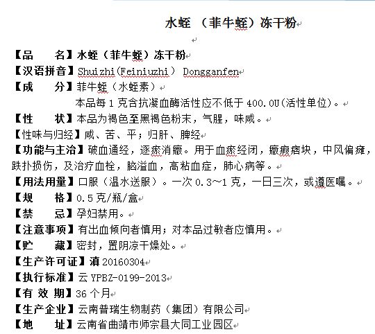 產(chǎn)品名稱: 水蛭(菲牛蛭)凍干粉