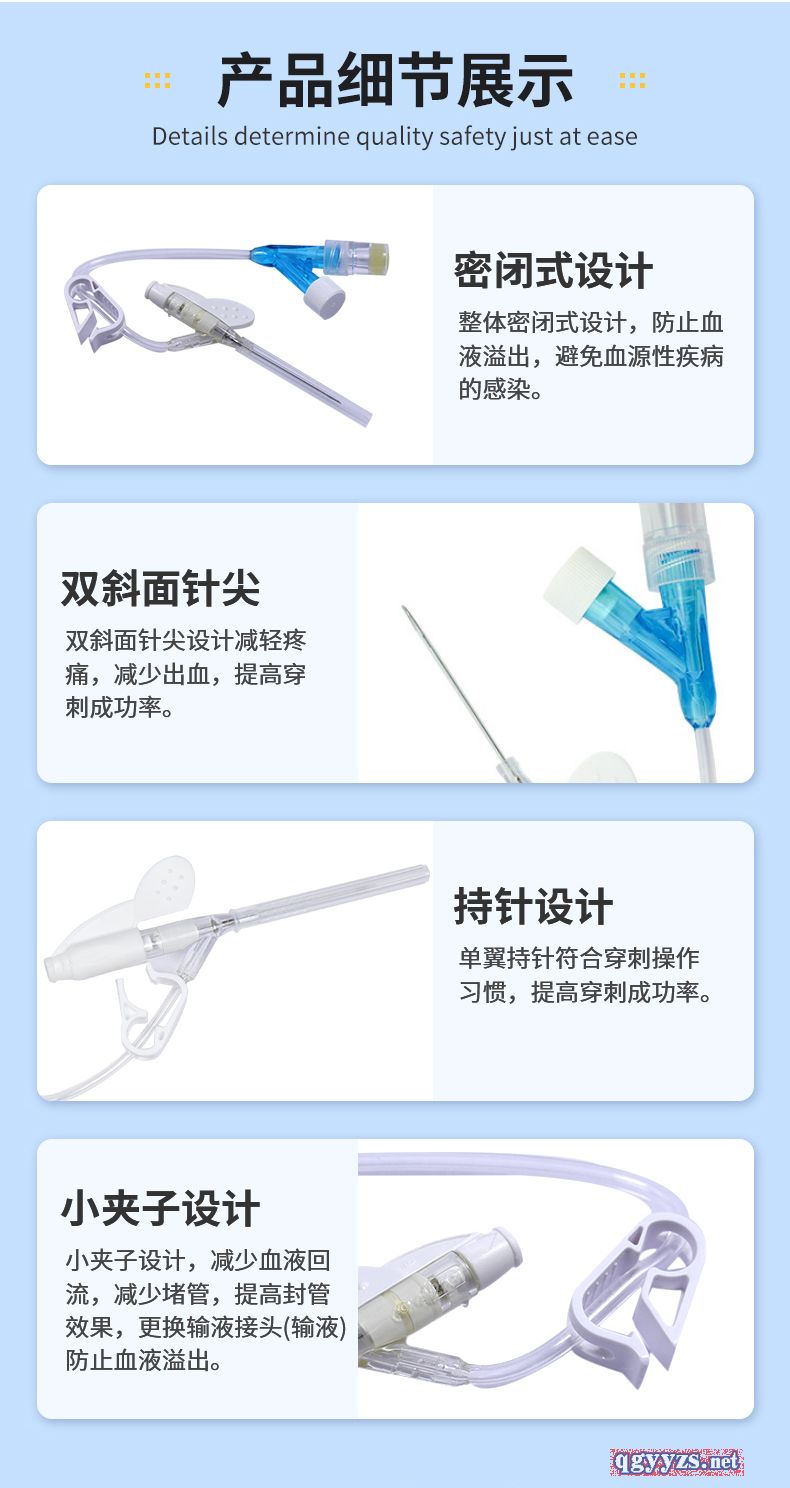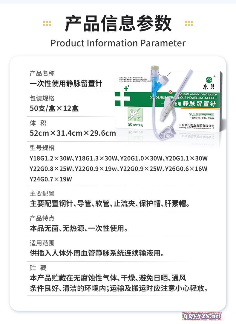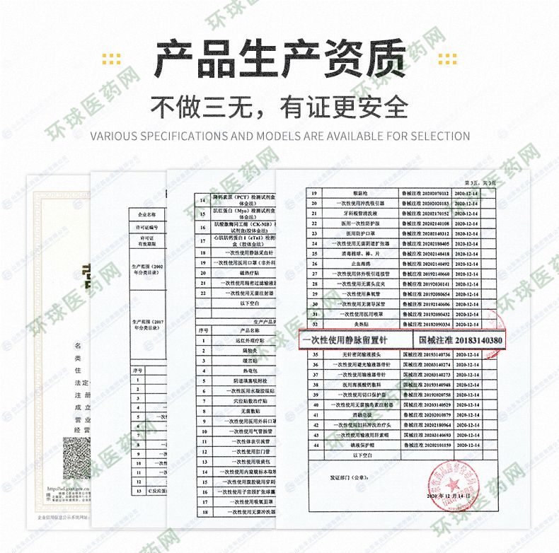 | 補充說明 | 產(chǎn)品名稱:一次性使用靜脈留置針 產(chǎn)品規(guī)格:Y型,18G、20G、22G、24G、26G 醫(yī)療器械產(chǎn)品注冊證證號:國械注準20183140380 生產(chǎn)企業(yè)許可證號:魯食藥監(jiān)械生產(chǎn)許20140053號 適用范圍: 本產(chǎn)品供插入人體外周血管靜脈系統(tǒng)連續(xù)輸液用。 主要結(jié)構(gòu)與性能:Y型留置針主要由不銹鋼針管、導管(套管)、金屬楔、導管座(Y型)、隔離塞、針管座、長導管(連接管)、長導管連接座、肝素帽、 螺旋帽、滑動夾緊板、針管保護套組成。 產(chǎn)品特點: 1.導管柔軟,不易損傷血管**輸液時的** ;2.避免每天穿刺血管,減輕痛苦,保護血管 ;3.使病人在輸液時感覺更為舒適 ;4.提高工作效率 ;5.提高護理質(zhì)量 適用范圍::1.腫瘤科 2.兒科 3.神經(jīng)內(nèi)外科 4.普通病房 5.CT室 6.門急診 預期用途:臨床用于留置病人靜脈進行輸液 產(chǎn)品部件:蝶翼狀、肝素帽、滑動夾緊板 |