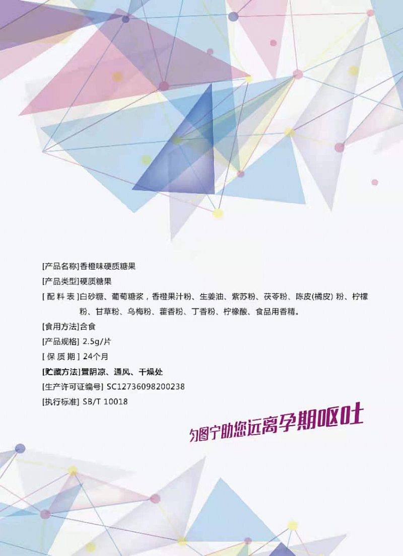 | 產(chǎn)品名稱 | 勻圖寧孕吐寧香橙味硬質(zhì)糖果 |