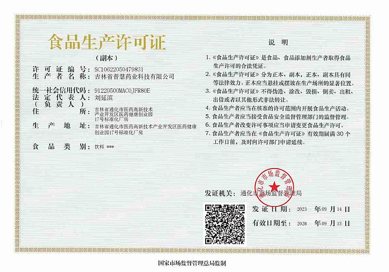 生產(chǎn)企業(yè): 吉林省普慧藥業(yè)科技有限公司