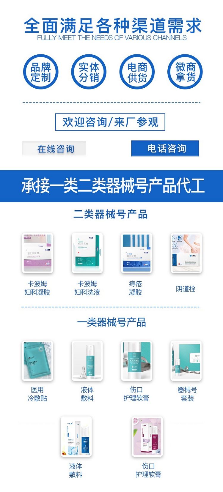 | 產(chǎn)品賣點 | 二類械字號產(chǎn)品可體現(xiàn)功效詞,官方控價可進藥店醫(yī)院現(xiàn)貨批發(fā)代理代加工OEM貼牌一站式服務(wù) |