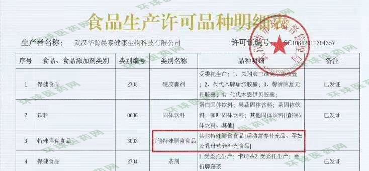 生產(chǎn)企業(yè): 武漢華源晨泰健康生物科技有限公司