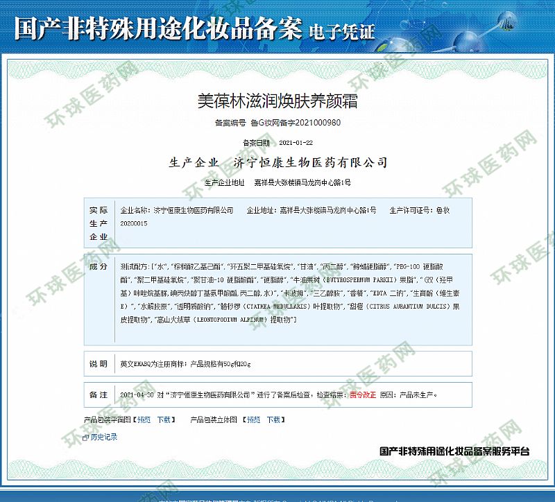 批準(zhǔn)文號: 魯妝20200015 【驗證真?zhèn)?/a>】