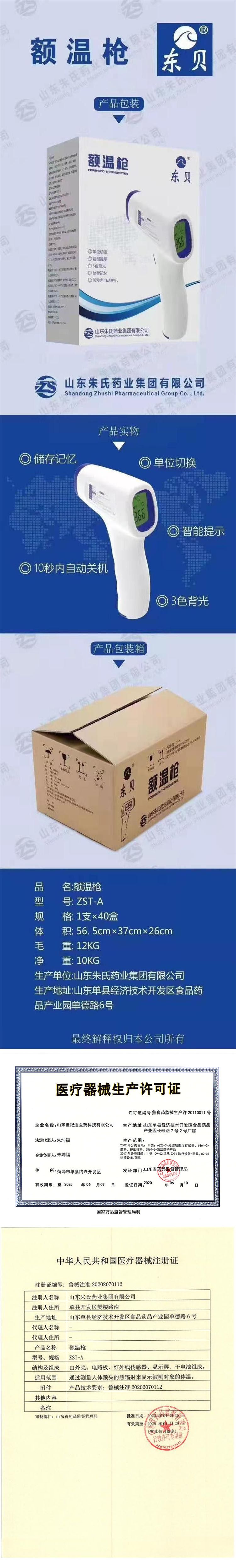 | 補充說明 | 東貝額溫槍生產(chǎn)廠家:山東朱氏藥業(yè)集團有限公司【18888366188 同微信號】。額溫槍又叫紅外線體溫槍,醫(yī)用體溫槍,紅外線測溫儀。 醫(yī)療器械額溫槍廠家,正規(guī)資質(zhì),質(zhì)量可靠! |