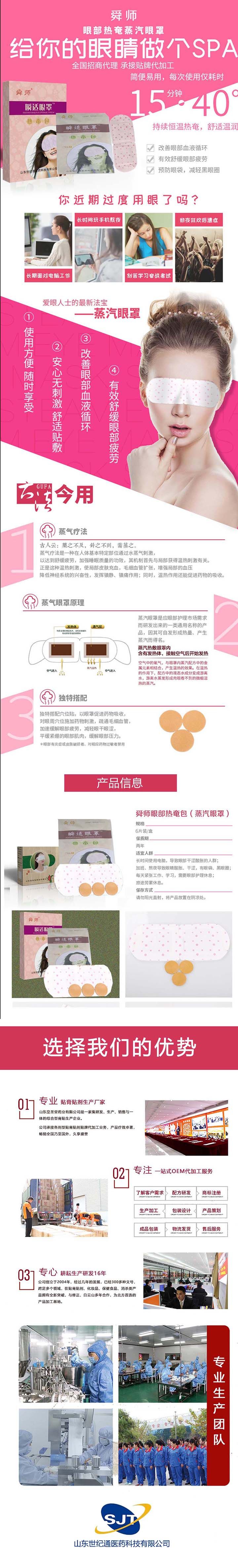 | 產(chǎn)品賣點 | 山東世紀通醫(yī)藥科技有限公司主要生產(chǎn)婦科、兒科、骨科、退熱貼、理療貼、磁療貼、臭氧化油、皮膚軟膏、噴劑、拔罐液等產(chǎn)品。可承接大小膏藥產(chǎn)品貼牌加工,產(chǎn)品為*新獨立一、二類器械文號、多省高價中標、國家醫(yī)保收費、嚴格市場保護、廠家直供,**可觀! |