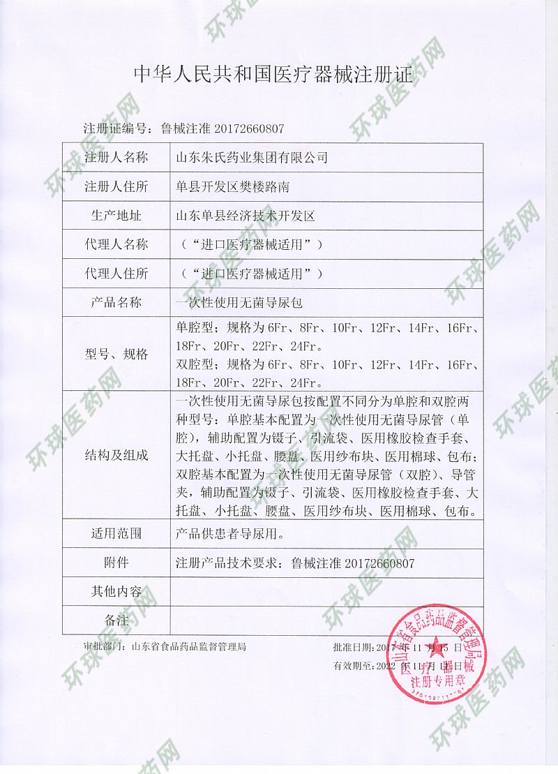 | 補(bǔ)充說(shuō)明 | 山東朱氏藥業(yè)集團(tuán),一次性醫(yī)用導(dǎo)尿包無(wú)菌雙腔硅膠尿管成人,一次性無(wú)菌注射器,一次性靜脈留置針,一次性配藥注射器,一次性使用精密過(guò)濾輸液器(避光性,高透性),一次性使用胃管,高法分子固定繃帶,醫(yī)用高分子夾板,一次性使用血樣采集針,脫脂棉球等醫(yī)療器械,多省區(qū)中標(biāo),資質(zhì)齊全,歡迎咨詢:(微信同號(hào))。 |