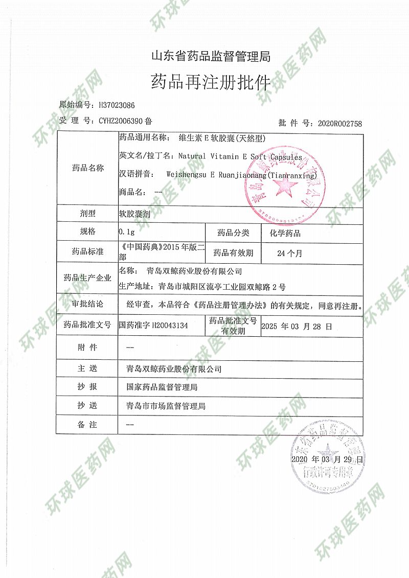 生產(chǎn)企業(yè): 青島雙鯨藥業(yè)有限公司