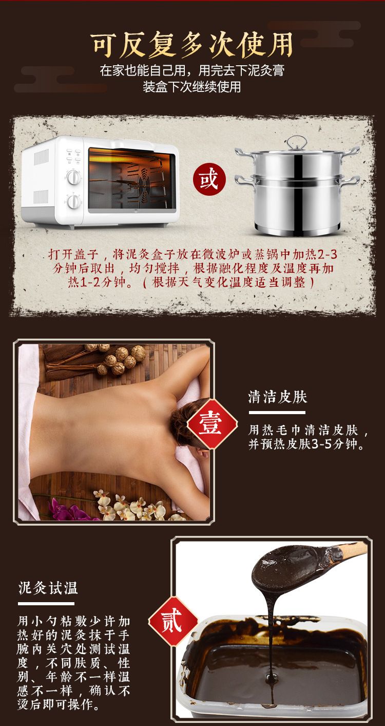 | 使用方法 | 可反復多次使用在家也能自己用,用完去下泥灸膏裝盒下次繼續(xù)使用 |