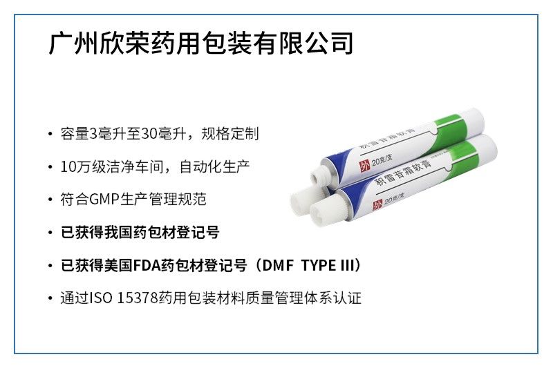 廣州欣榮為乳膏包裝管材廠家,生產(chǎn)的藥品乳膏包裝鋁管具有潔凈、衛(wèi)生、美觀、密封性高、無滲漏,使用方便和綠色環(huán)保等特點(diǎn),廣泛適用于醫(yī)藥包裝鋁管、化妝品軟管、日用化工包裝管等包材。