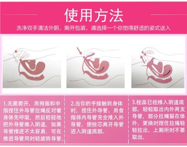 | 使用方法 | 使用方法:白天或睡前均可使用,放置時間5-9小時/支,癥狀嚴(yán)重者每日2支,8天一個療程。 1)清潔雙手,打開包裝,解開被扣拉線,用拇指和中指捏住外導(dǎo)管,拉繩端反對著身體,深呼吸,然后輕輕的把外導(dǎo)管推進陰道(如果導(dǎo)管不太容易推進,可以在推進的同時輕輕旋轉(zhuǎn)導(dǎo)管);2)當(dāng)手指接觸到身體時,捏住外導(dǎo)管,用食指將內(nèi)導(dǎo)管完全推入外導(dǎo)管,使栓芯離開導(dǎo)管進入陰道底部;3)栓芯已經(jīng)進入陰道底部,輕輕地取出內(nèi)外兩支導(dǎo)管棄置,部分拉繩留在體外,更換時,捏住拉繩輕輕拉出,上廁所時不要取出;4)白天或睡前均可使用,放置時間為5~9小時,每日1支。癥狀嚴(yán)重者每日2支,8天為一個療程。 |
