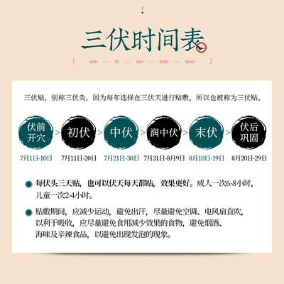| 產(chǎn)品用途 | 每伏頭三天貼,也可以伏天每天都貼,效果更好。成人一次6-8小時(shí),兒童一次2-4小時(shí)。貼敷期間,應(yīng)減少運(yùn)動(dòng),避免出汗,盡量避免空調(diào)、電風(fēng)扇直吹,以利于吸收,應(yīng)盡量避免食用減少效果的食物,避免煙酒、海味及辛辣食品,以避免出現(xiàn)發(fā)泡的現(xiàn)象。 |