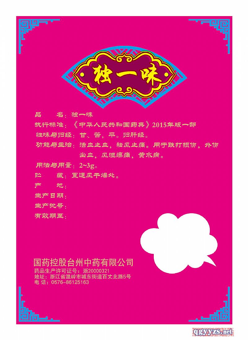生產企業(yè): 國藥控股臺州中藥有限公司