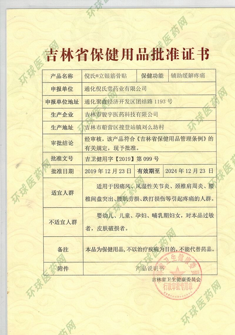 批準文號: 吉衛(wèi)健用字2019第099號 【驗證真?zhèn)?/a>】