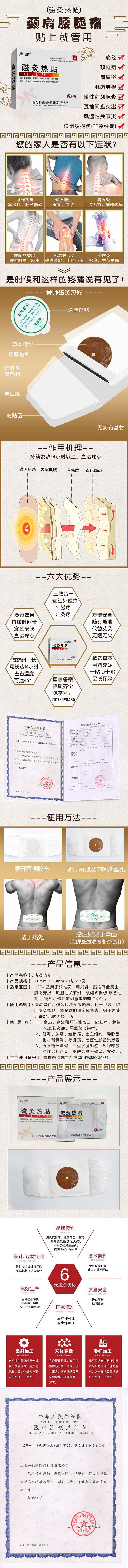 | 補(bǔ)充說明 | 山東世紀(jì)通醫(yī)藥科技有限公司有幾十種一類、二類械字號(hào)文號(hào),現(xiàn)有產(chǎn)品也有上百種,合作客戶也是遍布全國各地,膏藥貼劑、保健食品、高端化妝品系列全國招商,我們?yōu)榱藬U(kuò)大市場(chǎng),與更多客戶合作,也希望有新型外用產(chǎn)品規(guī)格定制加工要求、貼牌加工的客戶聯(lián)系 龐龍:18888366188。我們給您專業(yè)的灸熱貼產(chǎn)品和服務(wù)。 |