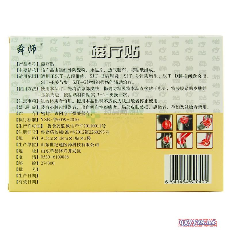 | 產(chǎn)品用途 | 適用于頸椎病、肩周炎、骨質(zhì)增生、腰椎間盤(pán)突出、關(guān)節(jié)炎、肌纖維炎、軟組織損傷、急性腰肌勞損的輔助治療。 |