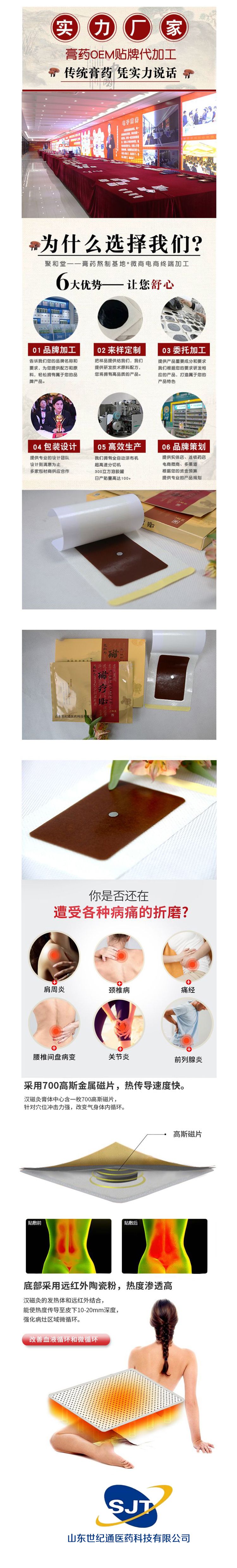 | 補(bǔ)充說(shuō)明 | 山東世紀(jì)通醫(yī)藥科技有限公司一家集貼膏、醫(yī)療器械、化妝品、保健食品、生物試劑新藥研發(fā)生產(chǎn)與銷(xiāo)售、房產(chǎn)開(kāi)發(fā)、物流配送、企業(yè)培訓(xùn)為一體的大型綜合型企業(yè)集團(tuán)。質(zhì)量可靠,資質(zhì)齊全,一站式醫(yī)療器械OEM貼牌代工,承接批發(fā)代理! |