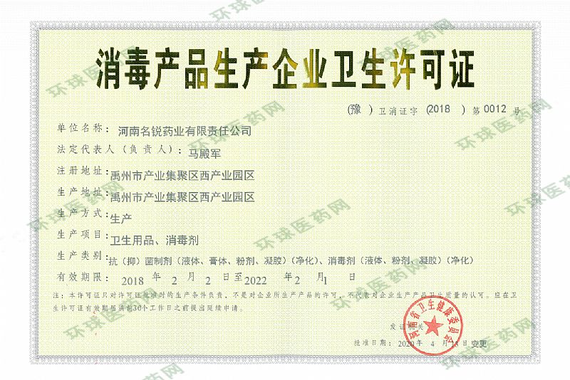 批準(zhǔn)文號(hào): 豫衛(wèi)消證字2018第0012號(hào)