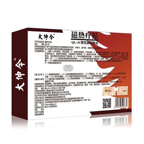 | 使用方法 | 清潔患處,確認包裝無破損后,打開包裝,取出磁熱療貼,將貼劑的隔離膜撕去,貼于患外每24小時更換一次。 |