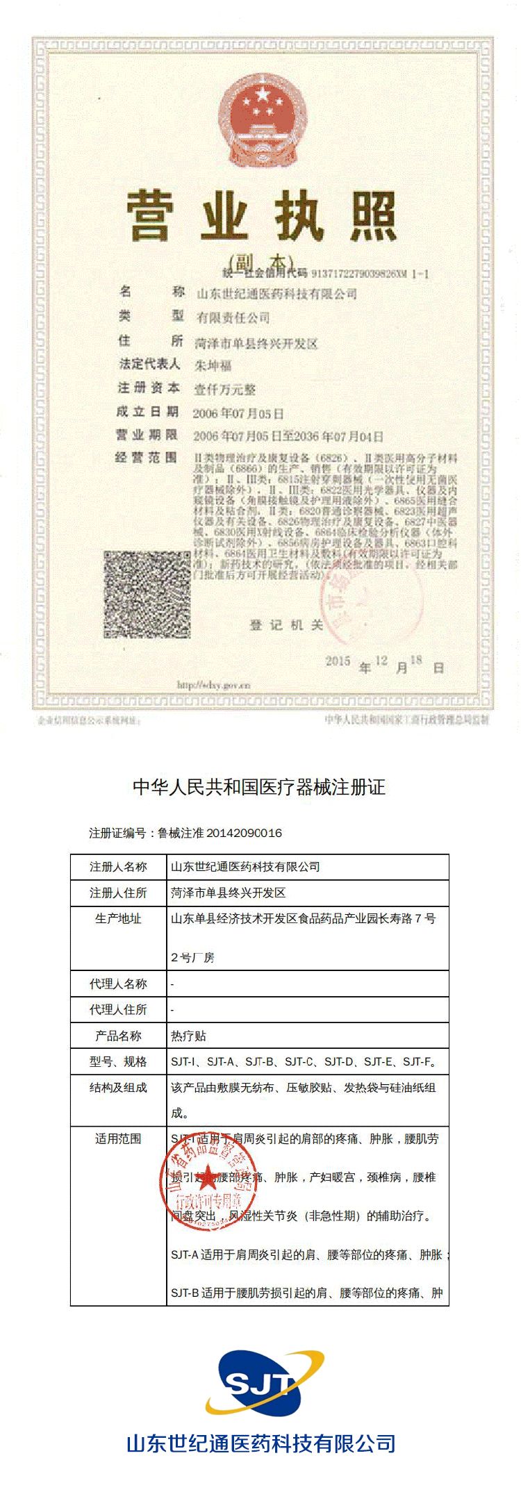 | 補充說明 | 山東世紀通醫(yī)藥科技有限公司有幾十種一類、二類械字號文號,現(xiàn)有產(chǎn)品也有上百種,合作客戶也是遍布全國各地,膏藥貼劑、保健食品、高端化妝品系列全國招商,我們?yōu)榱藬U大市場,與更多客戶合作,也希望有新型外用產(chǎn)品規(guī)格定制加工要求、貼牌加工的客戶聯(lián)系龐龍:18888366188。我們給您專業(yè)的產(chǎn)品和服務(wù)。 |