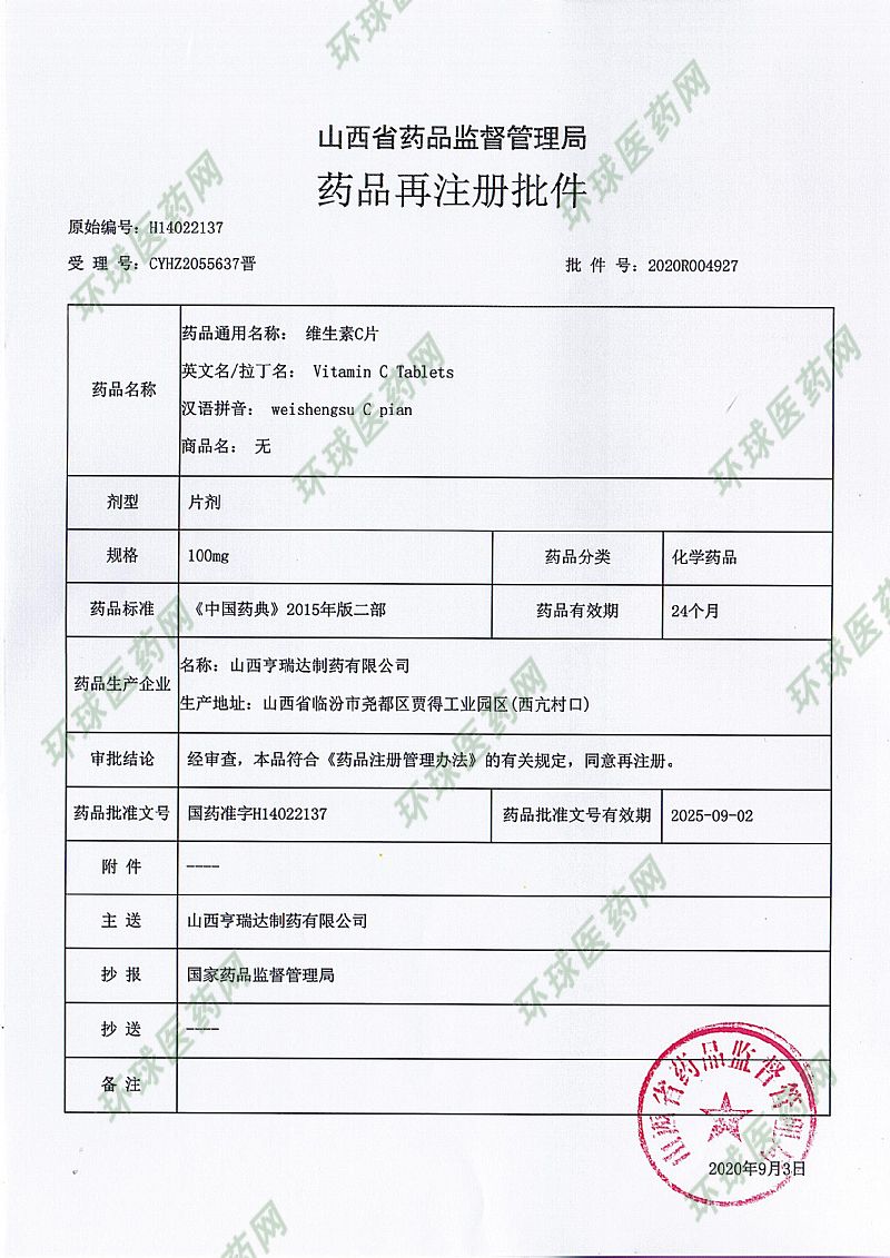 生產(chǎn)企業(yè): 山西亨瑞達(dá)制藥有限公司