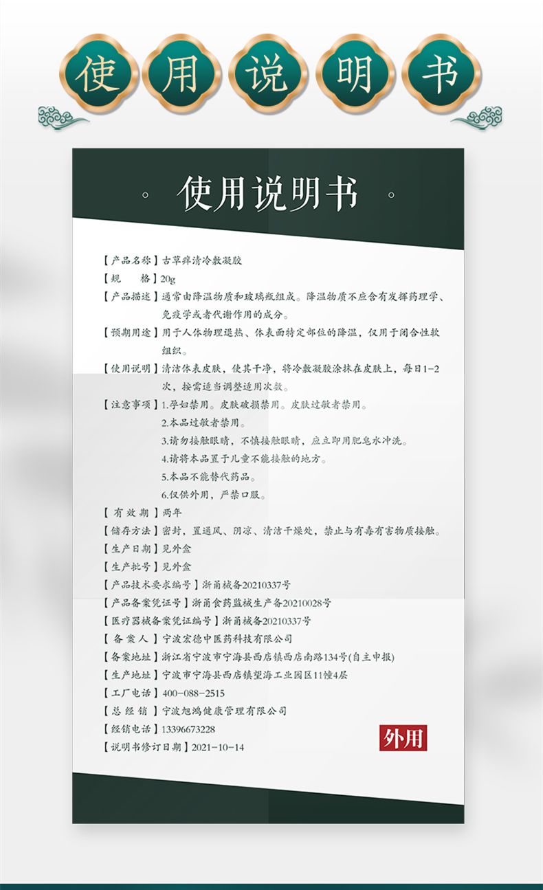 | 產(chǎn)品賣點(diǎn) | 中藥提取物,冷敷凝膠,適用于皮膚瘙癢、濕疹、皮炎、蚊蟲叮咬等! |