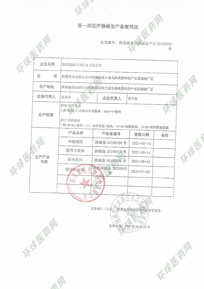 批準文號: 陜械備20180168 【驗證真?zhèn)?/a>】