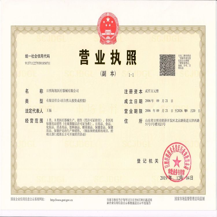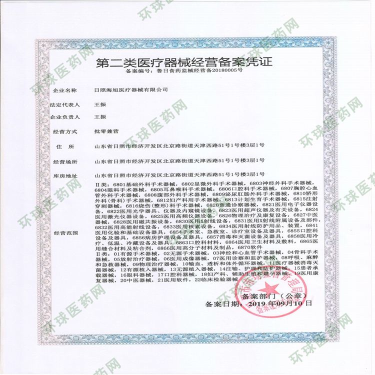 - 日照海旭醫(yī)療器械有限公司