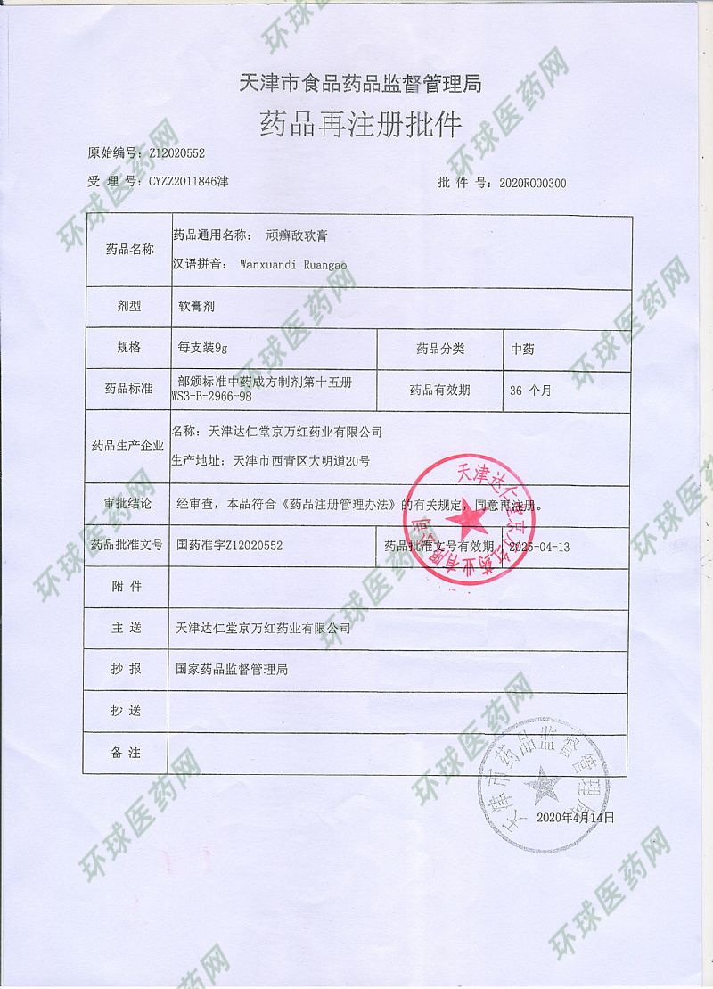 生產(chǎn)企業(yè): 天津達(dá)仁堂京萬紅藥業(yè)有限公司