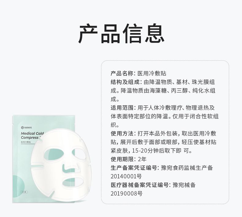 | 使用方法 | 取出冷敷貼,展開后敷于面部或眼部撫平,15-20分鐘即可 |