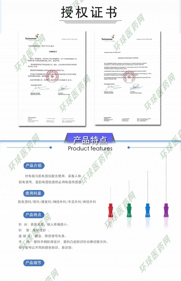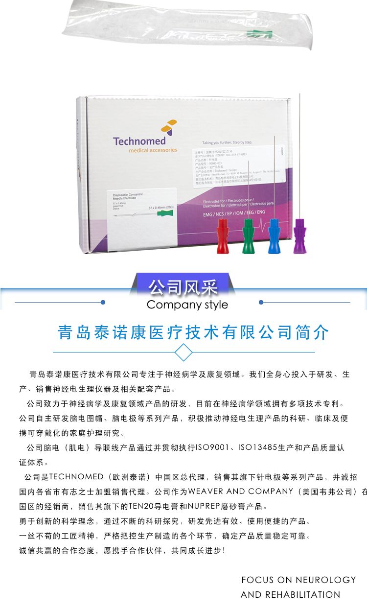 公司生產(chǎn)的神經(jīng)肌肉刺激器用體表電極等產(chǎn)品為肌電檢測提供了便利方案,同時作為Technomed(歐洲泰諾)中國區(qū)總代理,銷售Needle Electrode針電極產(chǎn)品。