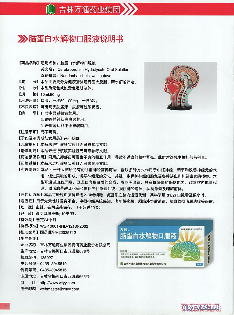 | 通用名稱 | 腦蛋白水解物口服液 |
