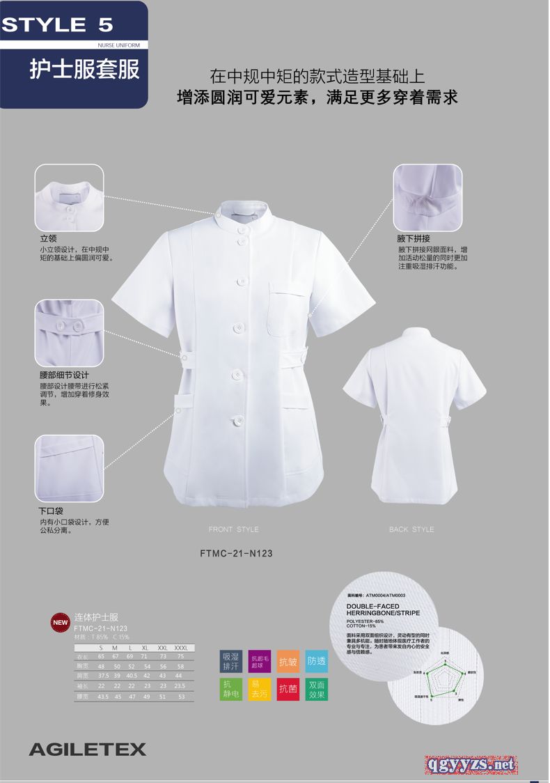 | 補(bǔ)充說(shuō)明 | 自主研發(fā)新型功能型面料吸濕排汗、易去污、抗菌、抗皺、抗靜電、抗起毛球; 款式多樣可定制,功能性連體護(hù)士服、分體護(hù)士服、醫(yī)師服; 簡(jiǎn)約設(shè)計(jì),實(shí)現(xiàn)超高性?xún)r(jià)比;舒適修身,詮釋魅力; 衣肩線(xiàn)條貼合人體曲線(xiàn),減輕醫(yī)者伏案時(shí)的肩膀負(fù)擔(dān); 醫(yī)護(hù)工裝新體驗(yàn),展現(xiàn)專(zhuān)業(yè)醫(yī)者形象; 打造專(zhuān)業(yè)、權(quán)威、值得信賴(lài)的職業(yè)形象 |