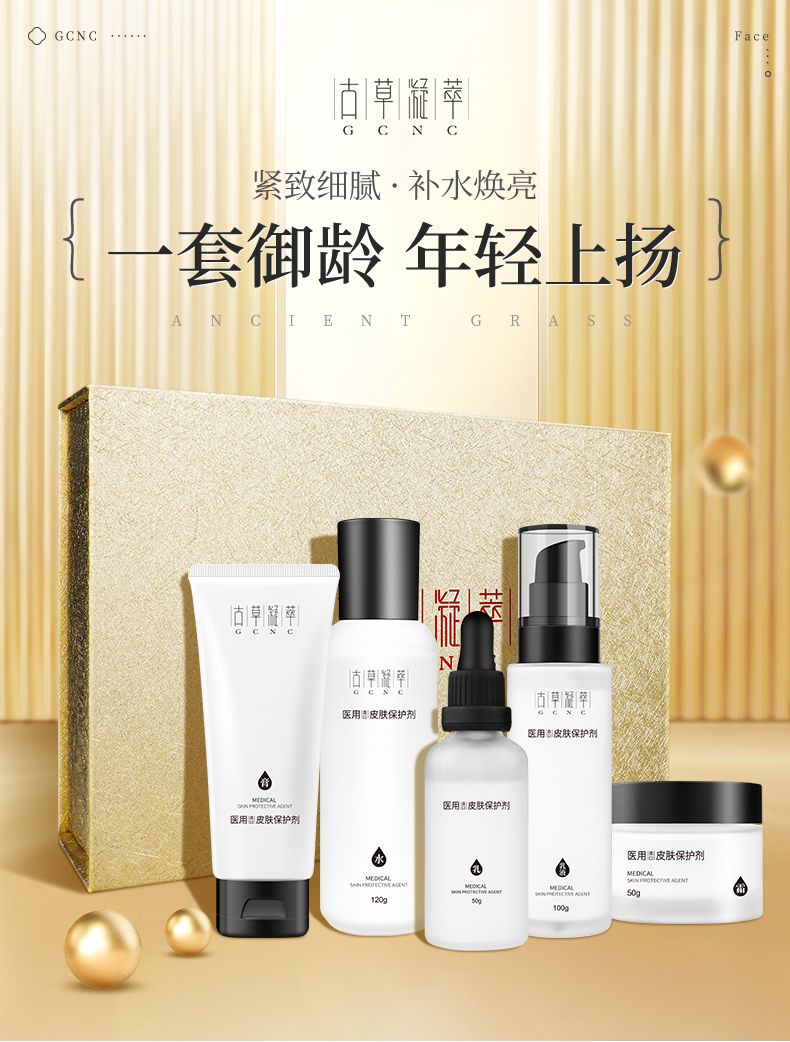 | 產(chǎn)品規(guī)格 | 膏型100g+水型120g+乳型50g+乳液型100g+霜型50g |