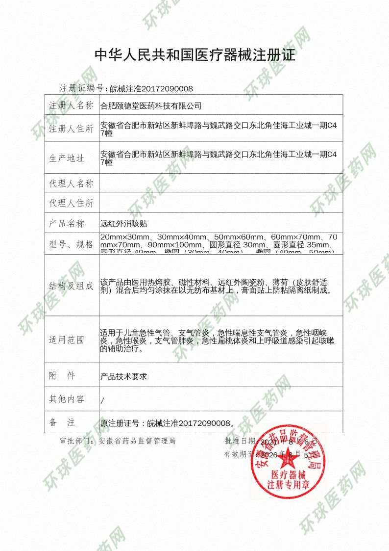 批準(zhǔn)文號: 皖械注準(zhǔn)20172090008號 【驗(yàn)證真?zhèn)?/a>】