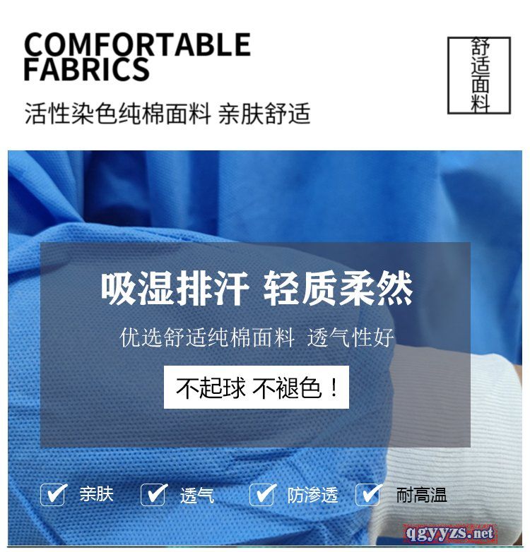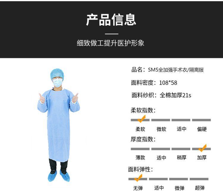 | 補充說明 | 1.手術(shù)衣經(jīng)過環(huán)氧乙烷滅菌,打開即可使用。 2.手術(shù)衣采取扇形折疊方式,方便展開和穿戴。 3.手術(shù)衣關(guān)鍵區(qū)域采取超聲波車縫,有效阻隔液體滲漏。 4.手術(shù)衣一次性使用,成本低,有效提高醫(yī)護人員工作效率。 5.術(shù)后的手術(shù)衣,可以直接作焚燒處理,減少環(huán)境污染。 采用高阻隔性和透氣性能良好的經(jīng)三抗處理的SMMMS無紡布作為基材,穿著十分舒適,抗?jié)B透性強,對干濕態(tài)下的細菌有良好的屏蔽效果,有效地避免了患者和醫(yī)護人員間的交叉感染。 |