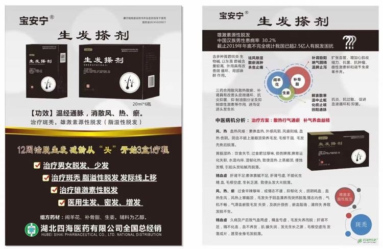 | 產(chǎn)品賣點(diǎn) | 中藥生發(fā)外用搽劑,零掛網(wǎng)治脫發(fā)生發(fā),減齡從“頭”開(kāi)始 |