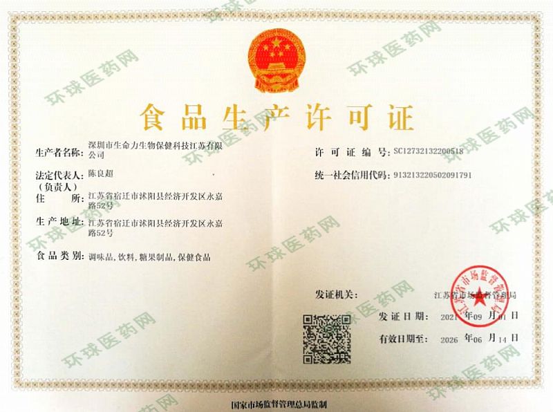 生產(chǎn)企業(yè): 深圳市生命力生物保健科技江蘇有限公司